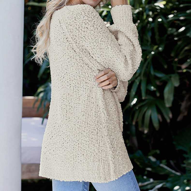 Comfy Oversized V Neck Popcorn Sweater Pullover quantity