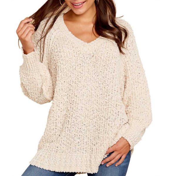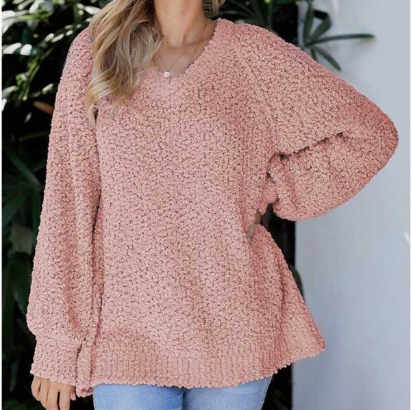 / Comfy Oversized V Neck Popcorn Sweater Pullover