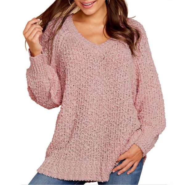 Comfy Oversized V Neck Popcorn Sweater Pullover