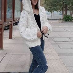 / Oversize Braided Chunky Sweater Hoodie Knitted Cardigan Jacket Sweater