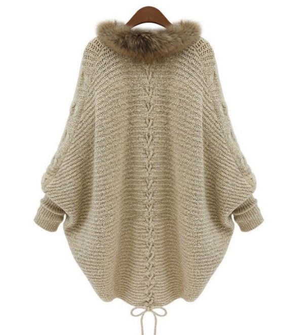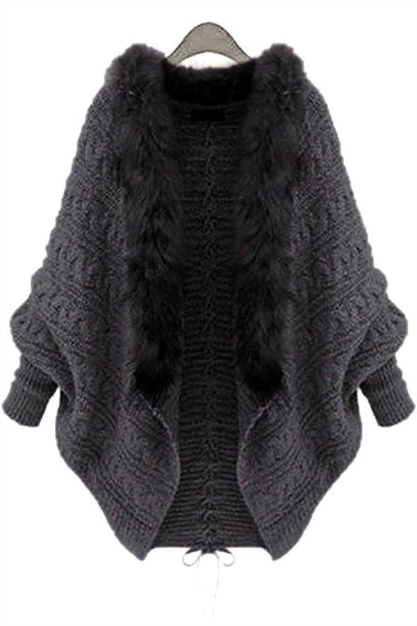 / Oversized Furry Fur Collar Trim Batwing Knit Cardigan Sweaters