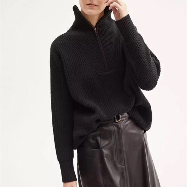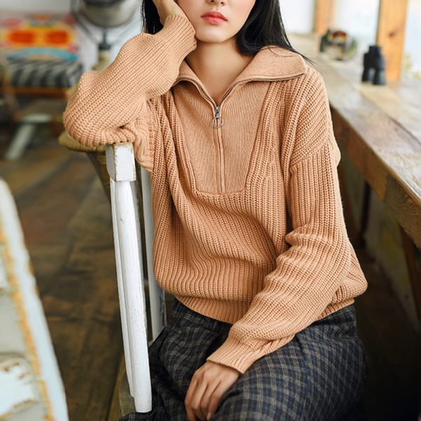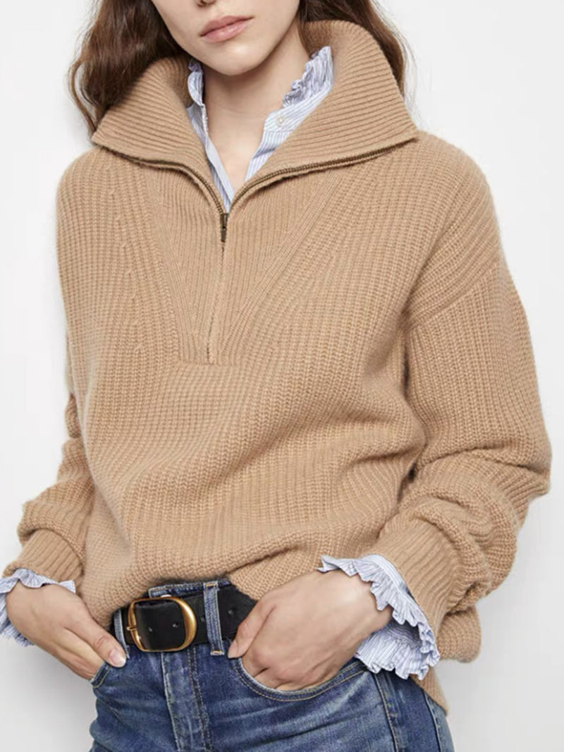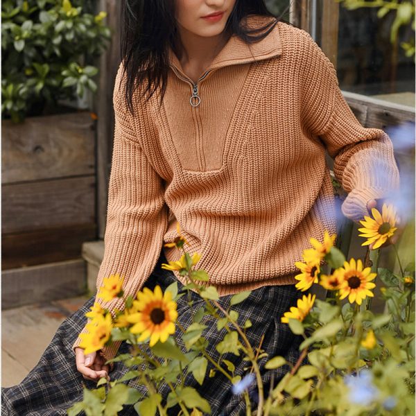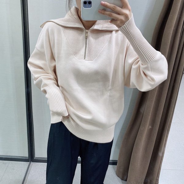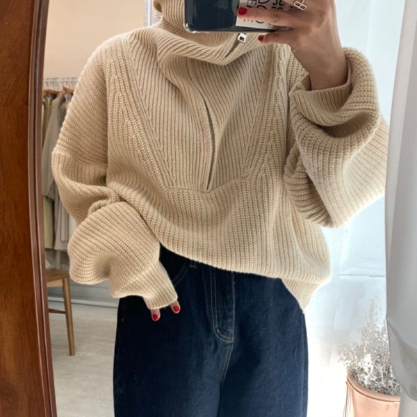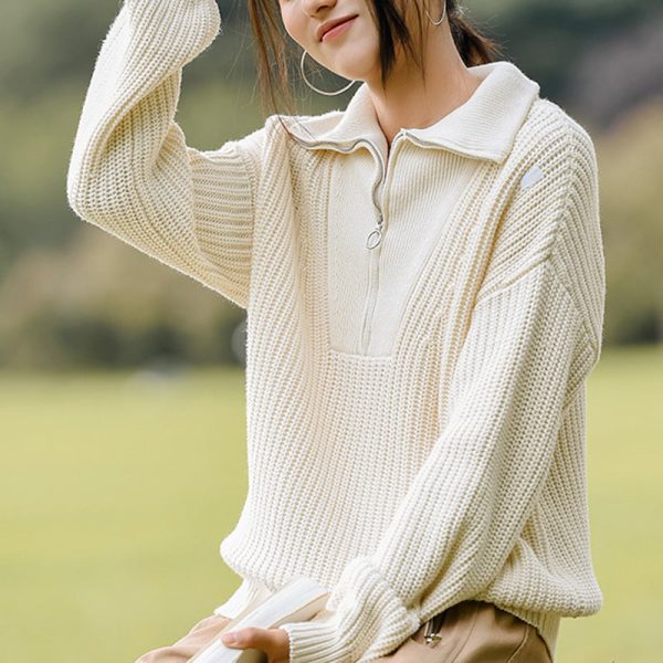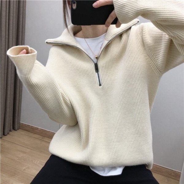 / Oversized Sporty Quarter Zip Pullover Sweater