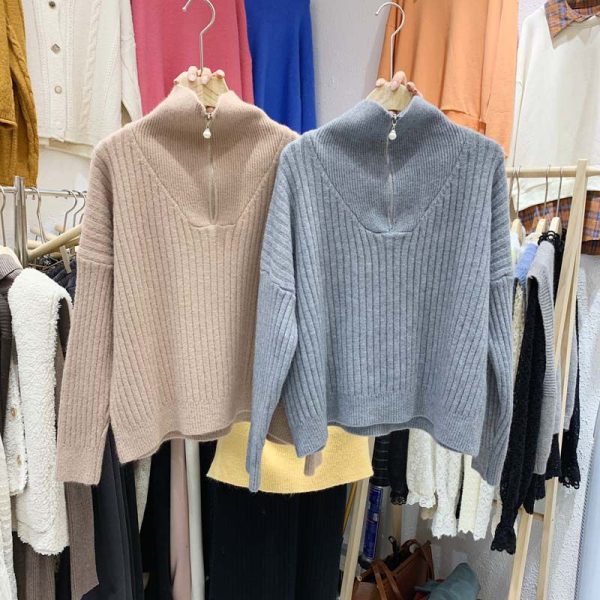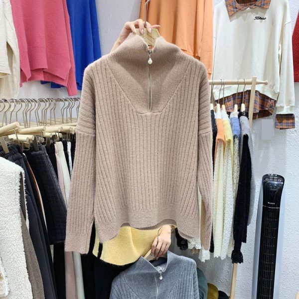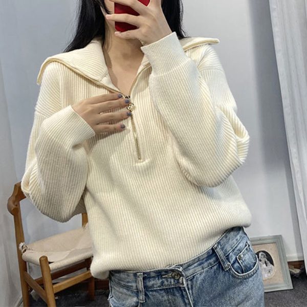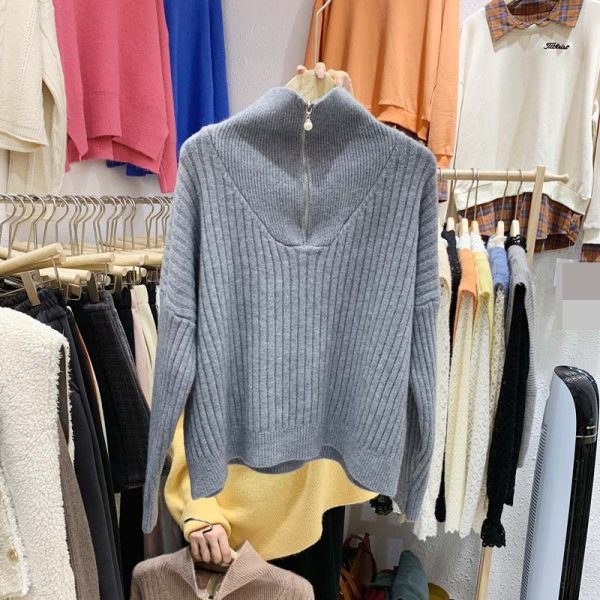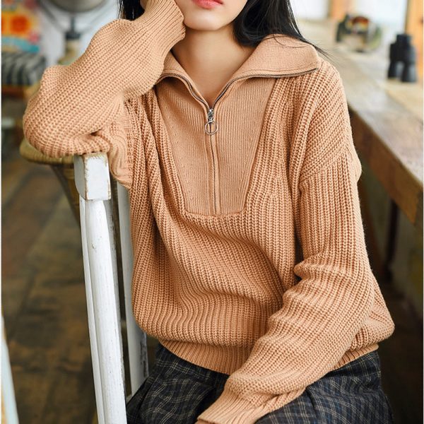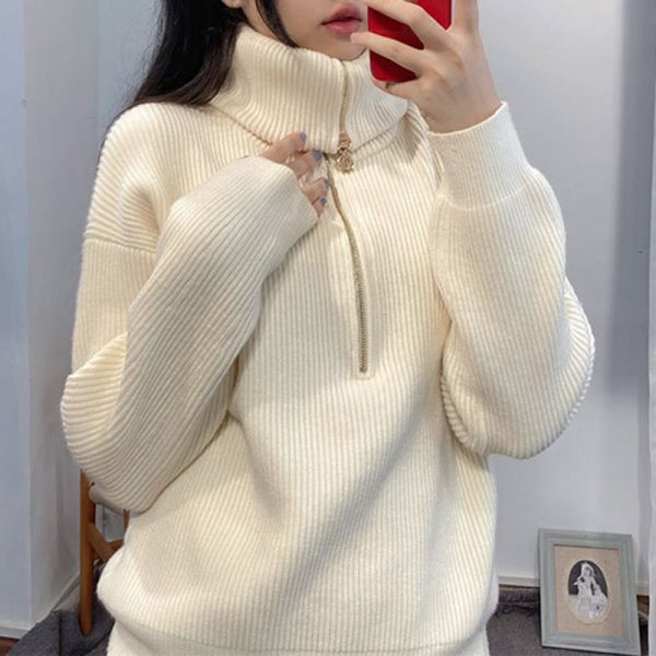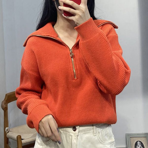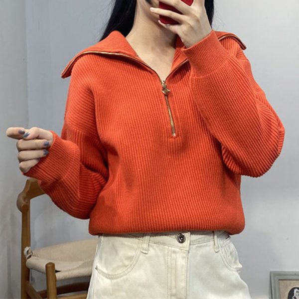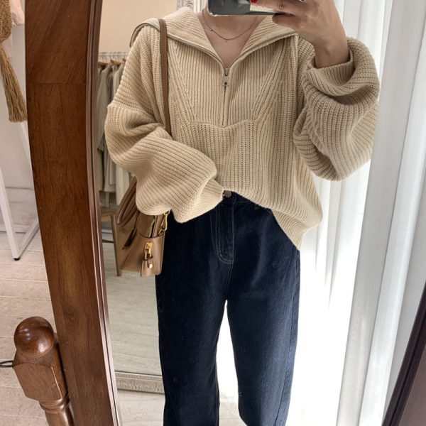 Oversized Sporty Quarter Zip Pullover Sweater quantity